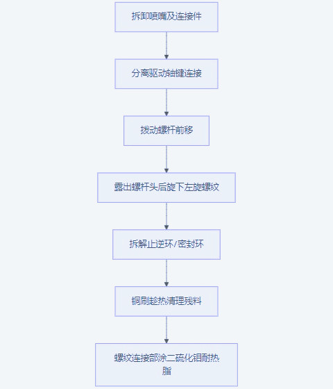 當螺桿卡死后,暴力拆卸將導致螺紋崩裂甚至料筒報廢。必須嚴格執行熱拆解工藝: